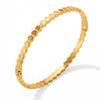 Helike is one of Jupiter’s moons, orbiting far from the planet in quiet solitude. Its name evokes rhythm and structure, qualities mirrored in the bangle’s clean, repeating pattern. Like the moon’s steady path around its giant host, this design brings balance, consistency, and subtle elegance.