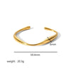 Elegant in its simplicity, the Phoebe Bangle is made of polished stainless steel with a lustrous gold finish. Its open design, with fluid curves and a refined asymmetry, creates a subtle statement of contemporary sophistication. Unembellished yet captivating, this minimalist piece is perfect for layering or wearing solo, adapting effortlessly to any style.
